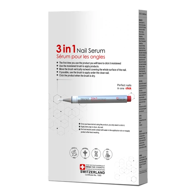 امروزه اکثر مشکلات مربوط به ناخن که شامل شکنندگی، پوسته پوسته شدن ناخن و کوتیکول، بلند شدن صفحهی ناخن، ایجاد برجستگی و یا فرورفتگی در سطح ناخن، رشد نامناسب، عفونت، التهاب و قرمزی بافت اطراف ناخن در اثر آسیب به ماتریکس ناخن و یا کاشت و زیباسازی غیراصولی ناخن ایجاد می شود. بنابراین برای درمان یا رفع مشکلات ناخن میبایست از محصولات مراقبتی استفاده کرد که بتواند ناخنها را ترمیم و مستحکم کرده و یا در صورت وجود عفونت قارچی، به درمان آنها کمک کند. برای درمان شکنندگی ناخنها که با کمبود رطوبت در ناخن ایجاد میشود، میبایست از محصولاتی استفاده کرد که به میزان کافی سطح ناخن را آبرسانی میکنند. کراتین، پروتئین اصلی تشکیل دهندهی صفحه ناخن است. زمانی که به دلایل مختلف میزان کراتین در بستر ناخن کم شود و یا اتصالات بین رشته ها از بین برود، استحکام و یکپارچگی ناخن کم شده و ناخن شکننده یا پوسته پوسته (به اصطلاح پلیسه) میشود. بنابراین استفاده از محصولاتی که ساخت کراتین در ناخن را افزایش دهد، استحکام و سفتی ناخنها را بهبود میبخشد. سرم تقویت کننده ناخن سه در یک تراست با داشتن ترکیبات آبرسان و ویتامینهای موثر، استحکام و رشد ناخن را افزایش داده و به ترمیم آسیبهای کوتیکول کمک میکند. ترکیبات ضد قارچی موجود در این محصول، ضمن بهبود عفونتهای قارچی ایجاد شده در ناخن، التهاب بافت اطراف ناخن را بهبود بخشیده و با حفظ سلامت ناخنها، زیبایی ناخنهای را دو چندان میکند.