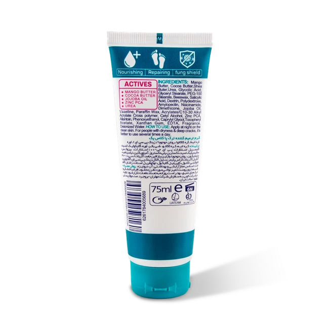 با ایجاد ترک ها در کف پا، فرد موقع ایستادن در این ناحیه احساس درد و ناراحتی کرده و پوست در این قسمت دچار پوسته ریزی، قرمزی و تورم می شود. پوست پا در این حالت مستعد انواع عفونت ها از جمله عفونت های قارچی است. بنابراین برای بهبود ترک های کف پا می بایست از محصولات مراقبتی و کمکی برای رفع و بهبود ترک های پا استفاده کرد. کرم ترمیم کننده ترک پا کلاس یک حاوی ترکیبات فعالی است که سلول های مرده ناحیه کف پا را با لایه برداری ملایم از بین برده و با آبرسانی به پوست در این ناحیه، از خشکی پوست در این ناحیه جلوگیری می کند. همچنین این محصول حاوی چند نوع کره گیاهی می باشد که وظیفه ترمیم و نرم کردن پوست را بر عهده دارد. ترکیبات ضد قارچی و ضد التهاب موجود در محصول از عفونت های قارچی در ناحیه پا جلوگیری کرده و به حفظ سلامت پاها کمک می کند.