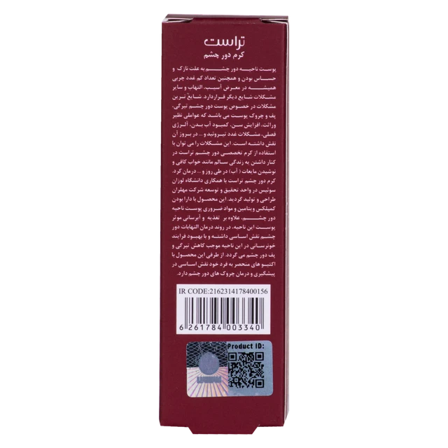 در این راستا کرم تخصصی دور چشم تراست در واحد تحقیق و توسعه شرکت مهلران با طراحی خاص، منحصر به فرد از دید فرمولاسیون و بسته بندی تولید شده و در اختیار مصرف کنندکان تراست قرار گرفته است. این محصول با فرمولاسیون منحصر به فرد خود، روند پیری و چروک نواحی دور چشم را به تاخیر انداخته و از طرفی چروکهای خفیف پوست را نیز درمان خواهد کرد.