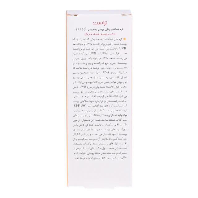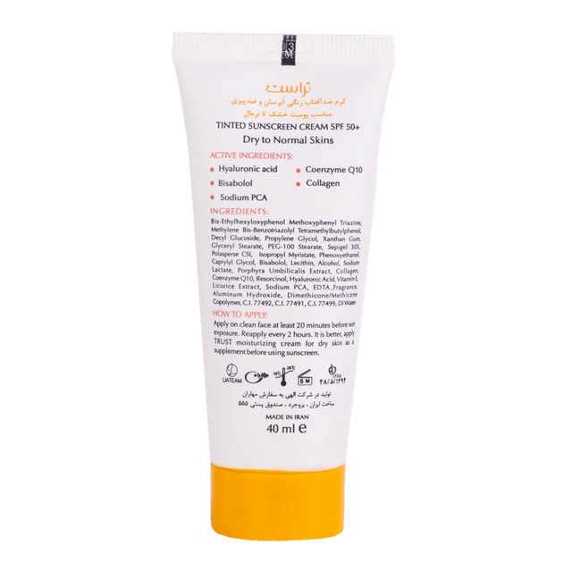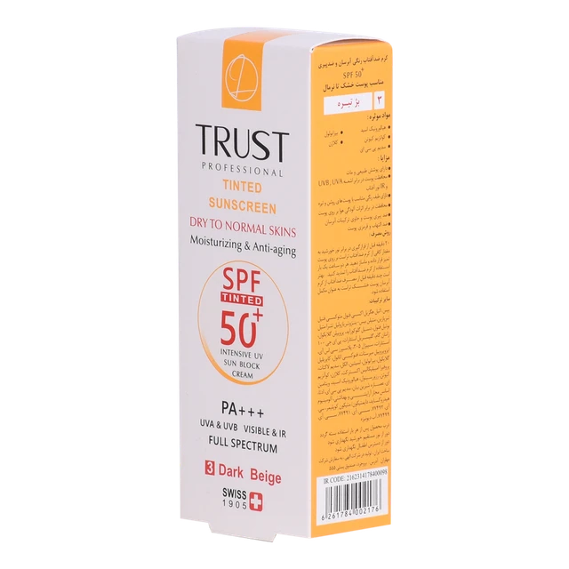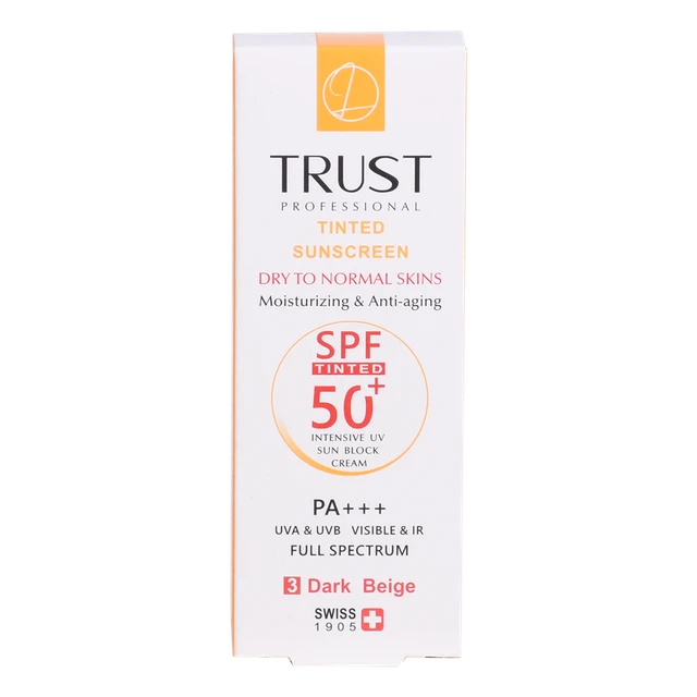 کرمهای ضدآفتاب رنگی تراست با SPF50+ از مرغوبترین و جدیدترین مواد اولیه موثره دارای حداکثر حفاظت دربرابر پرتوهای مضر خورشید ساخته شدهاند؛ این کرم با وجود بهرهمندی از بافتی سبک، دربرابر آسیبهای وارده توسط نور خورشید به خوبی از پوست محافظت و با مهار رادیکالهای آزاد از تخریب سلولهای پوستی جلوگیری میکند. همچنین با مصرف این محصول، بدون بسته شدن منافذ پوستی و ایجاد خلل در تنفس سلولهای پوستی، پوستتان آبرسانی میشود.